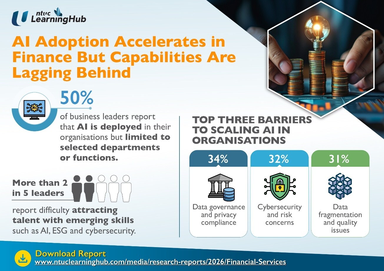 To download the Industry Insights Report on Financial Services, please visit https://www.ntuclearninghub.com/media/research-reports/2026/financial-services. To find out more about the courses, training, and grants, please contact NTUC LearningHub at www.ntuclearninghub.com.