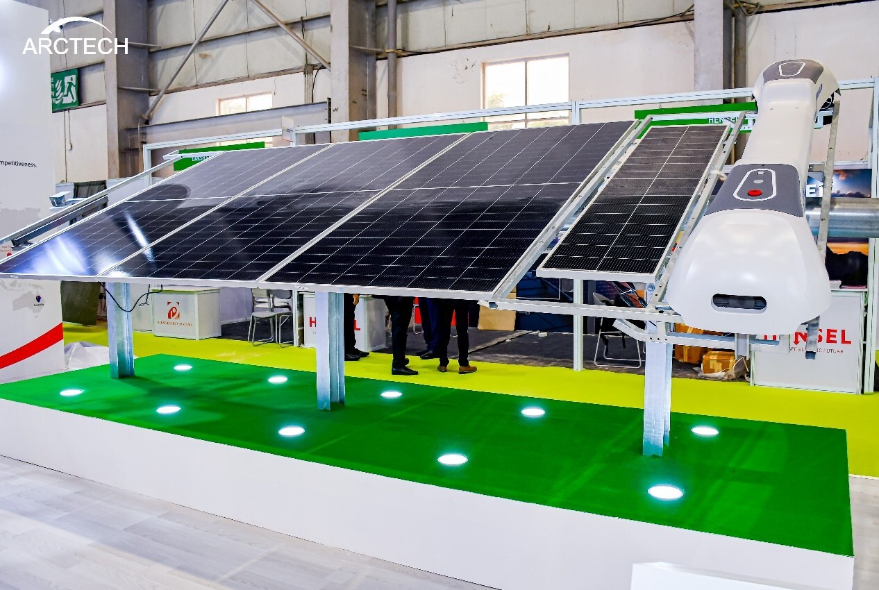 A key highlight was the “Tracker + Intelligent Cleaning Robot” solution. This innovative offering seamlessly integrates Arctech’s flagship 1P SkyLine II solar tracker with StarShine I, the intelligent cleaning robot, overcoming system compatibility challenges through smart, synchronized control. The solution combines the advantages of the multi-point parallel drive tracker—featuring high terrain adaptability with its “follow-the-terrain” design and precise positioning via smart AI algorithms—with the robot’s autonomous navigation, AI-powered path correction, and robust obstacle-crossing and cleaning capabilities. Together, they significantly enhance energy output, reduce operational costs, and boost the power plant’s lifetime value.