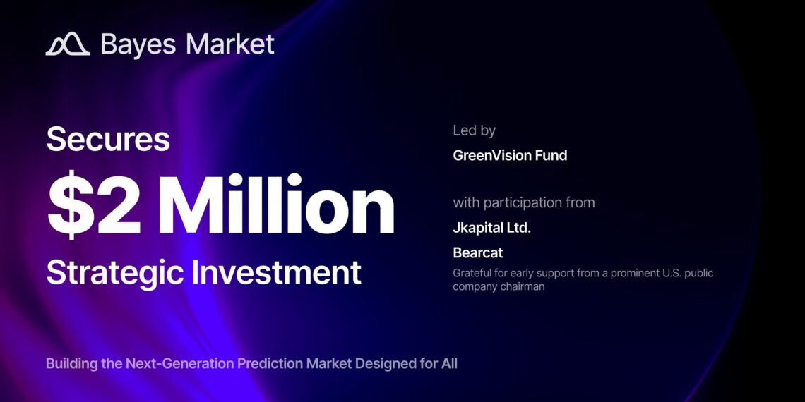 HONG KONG, Aug. 6, 2025 /PRNewswire/ — Bayes Labs team announces that Bayes Market, the prediction platform launched in July pioneering the next wave of decentralized information infrastructure, has secured $2 million strategic investment from a group of investors. The investors include institutional participation from Singapore’s GreenVision Fund, Jkapital Ltd., and Bearcat, alongside a prominent U.S. public company chairman. This diverse investor group shares a unified conviction: prediction markets represent a transformational shift in how society generates, exchanges, and values information.