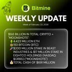 LAS VEGAS, Feb. 23, 2026 /PRNewswire/ — (NYSE AMERICAN: BMNR) Bitmine Immersion Technologies, Inc. (“Bitmine” or the “Company”) a Bitcoin and Ethereum Network company with a focus on the accumulation of crypto for long term investment, today announced Bitmine crypto + total cash + “moonshots” holdings totaling $9.6 billion.