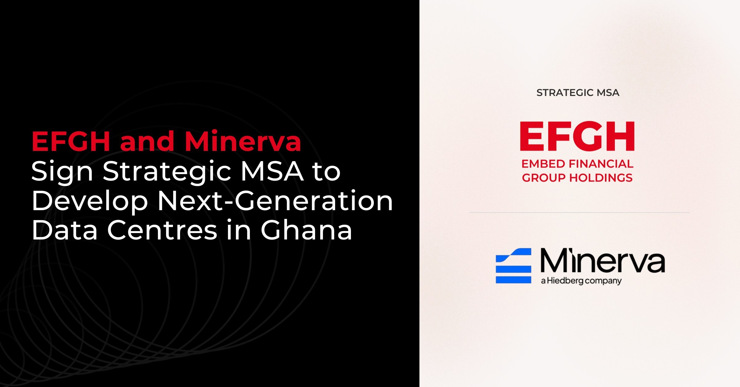 ACCRA, Ghana and SINGAPORE, Dec. 16, 2025 /PRNewswire/ — Embed Financial Group Holdings (EFGH) and Minerva Data Limited, a Hiedberg Holdings company with operations focused on digital infrastructure development in Ghana, have signed a Master Services Agreement (MSA) to jointly explore, structure and develop data centres and digital infrastructure projects across Ghana and other mutually agreed markets.
