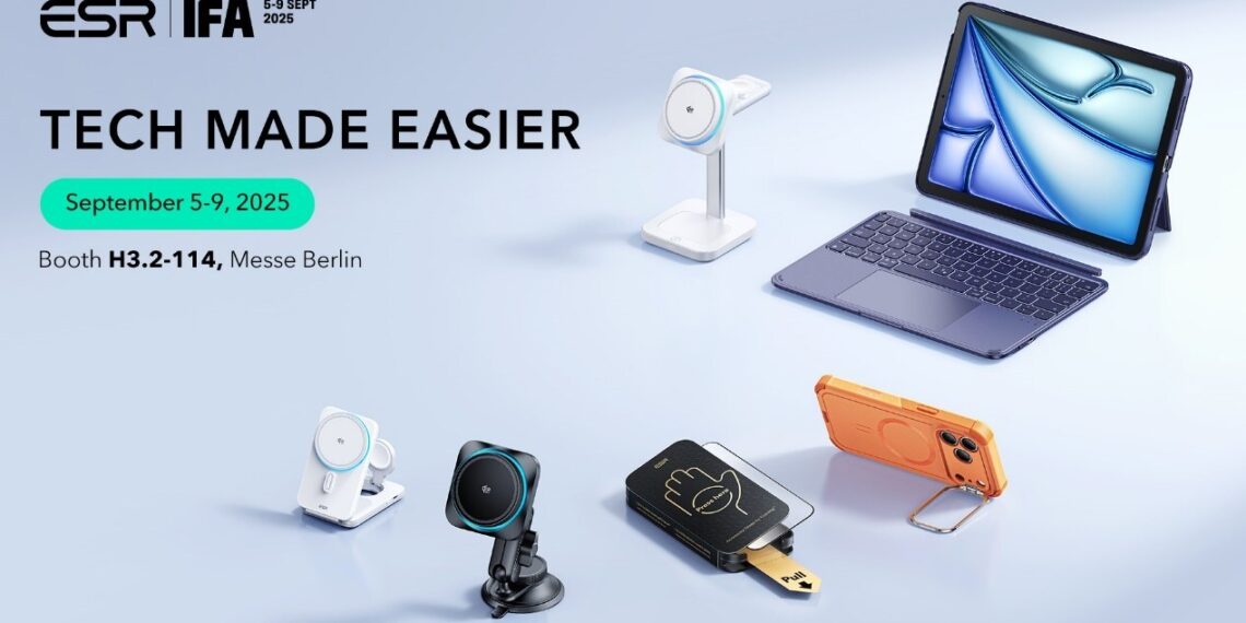 WILMINGTON, Del., Aug. 27, 2025 /PRNewswire/ — ESR, a global tech brand trusted by over 123 million users, will present its newest innovations at IFA 2025 from September 5–9 at Messe Berlin. Guided by its mission “Tech Made Easier,” ESR is set to unveil industry-first accessories that deliver wired-speed magnetic charging, stronger device protection, and more flexible productivity.