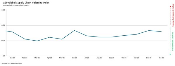 CLARK, N.J., Feb. 11, 2026 /PRNewswire/ — GEP Global Supply Chain Volatility Index — a leading indicator tracking demand conditions, shortages, transportation costs, inventories and backlogs, based on a monthly survey of 27,000 businesses — showed a marked bounce back in procurement activity in January.
