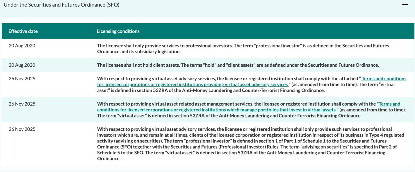 Type 4 License Upgrade: permits HFIAM to offer investment advice on virtual assets, subject to the SFC’s specific terms and conditions governing virtual asset advisory services.