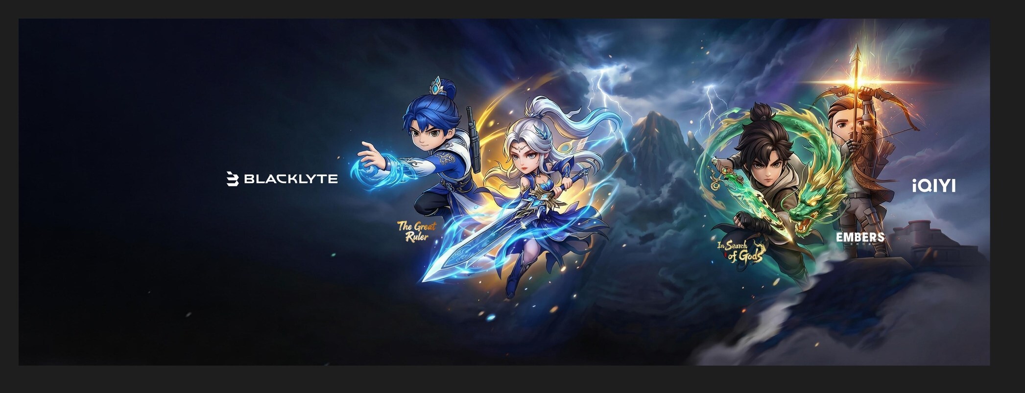 Characters from iQIYI and Blacklyte's collaborative projects, including The Great Ruler, In Search of God, and Embers.