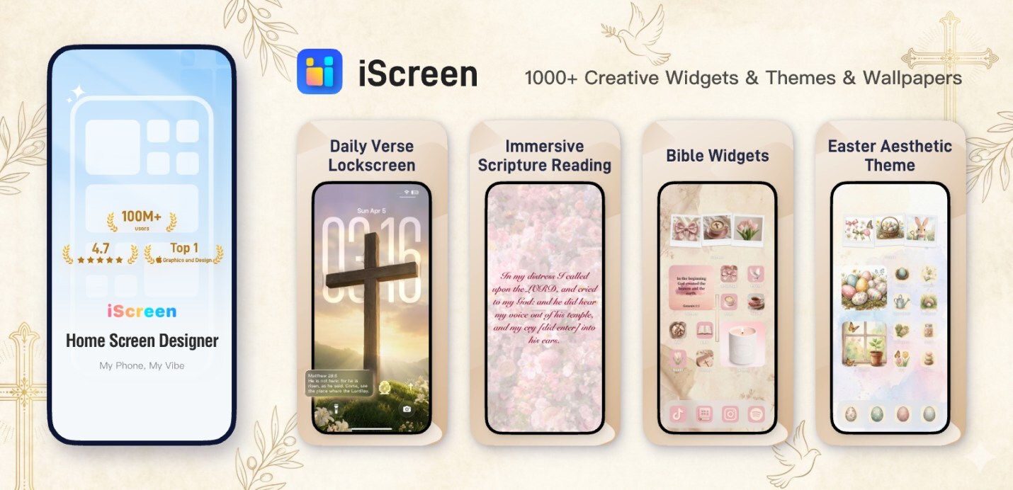 LOS ANGELES, March 30, 2026 /PRNewswire/ — As Easter approaches, iScreen—the globally popular widget app for iPhone—has unveiled a thoughtful Bible-themed collection designed to bring daily spiritual reflection to users’ screens. The update offers a meaningful blend of inspiration and design, helping users customize their iPhone home screen with purpose.