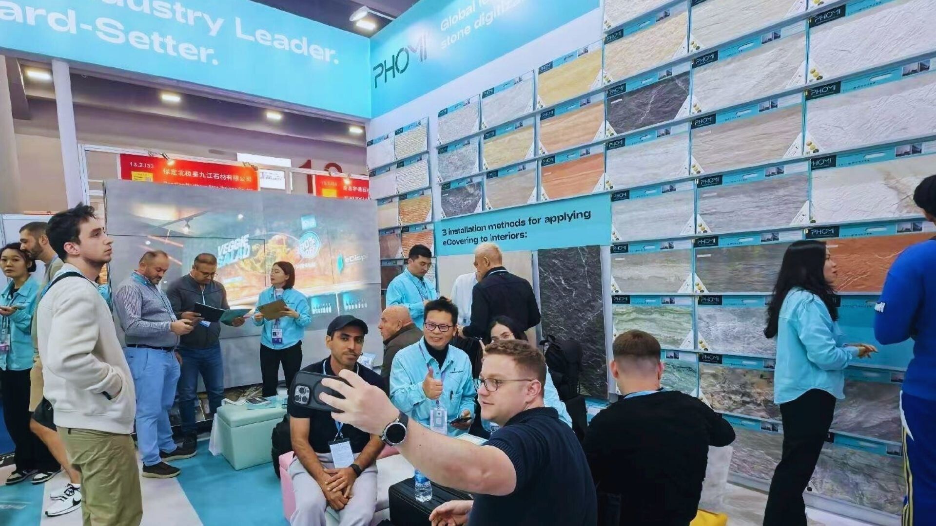 The reporter observed at the Canton Fair site that PHOMI’s booth was continuously crowded with visitors. Participants from all over the world showed a strong interest in PHOMI’s sustainable building materials.