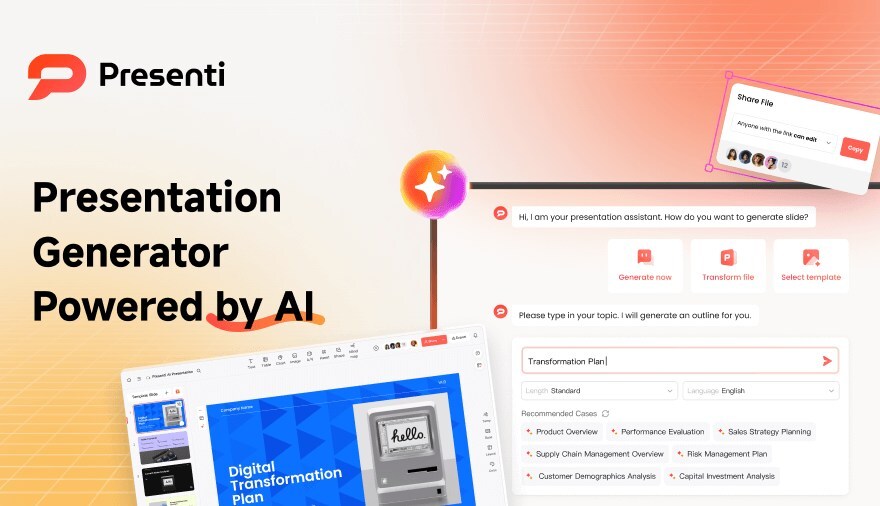Generate stunning presentations effortlessly with Presenti.ai's AI presentation maker