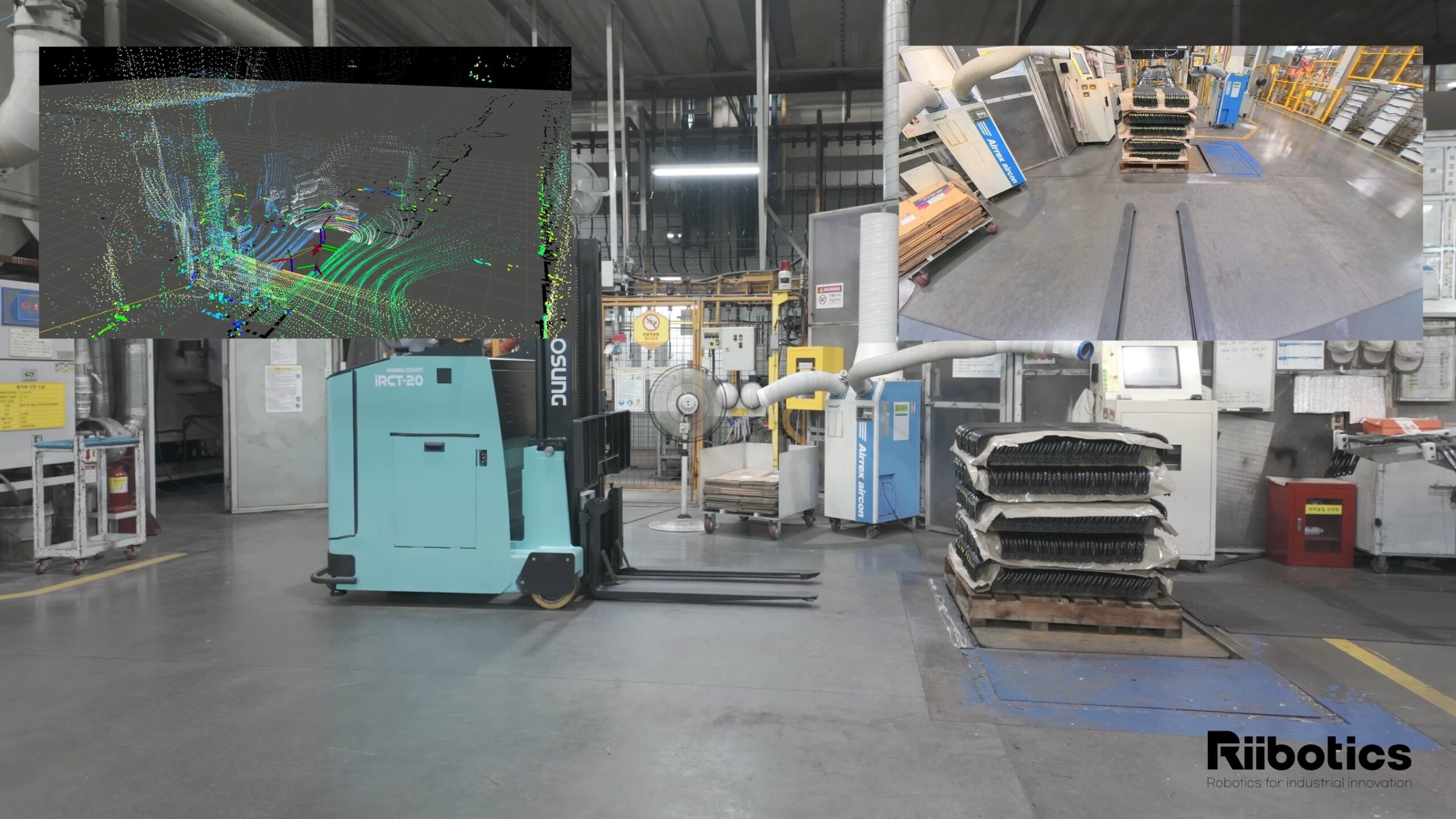 Riibotics has already validated its approach through a commercial project with a Tier 1 automotive supplier. In a congested, human-shared environment, Riibotics forklifts transported materials from the production line to the warehouse—without requiring magnetic tapes, QR codes, or other infrastructure. Using advanced perception, the system autonomously detected randomly placed materials, located empty storage slots, and completed fully hands-off material handling. The project delivered a payback period of less than one year, and the customer is now expanding deployment after seeing safe, efficient collaboration between humans and robots.