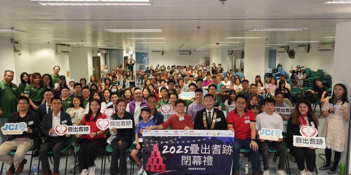 On August 10, JCI North District held the grand “2025 Senior Speed Stack Closing Ceremony” at Choi Yuen Community Hall in Sheung Shui. Over the past four months, the project has conducted over ten sport stacking training sessions, successfully helping over 200 seniors improve hand-eye coordination and demonstrating significant results in slowing cognitive decline. Distinguished guests at the event included Ms Jessie YU Sau-chu, BBS, MH, JP, Executive Committee Chairperson of the Hong Kong Senior Citizens Association; celebrity Tiffany Lau; North District Councillor Lau Chun Hoi; former North District Council Chairman So Sai Chi, SBS, MH; and JCI Hong Kong China President Rafael Wong. The event received support from various social organizations and enterprises, including the Hong Kong Senior Citizens Association, Hong Kong Starlight Lions Club, Lingnan University, Sport Stacking Association of Hong Kong China, Wofoo Social Enterprises, Coalition of Global Home Service Sustainable Development, Hong Kong Christian Service, and Hong Kong Caring Magic Circus, raising awareness about using sport stacking to delay cognitive decline.