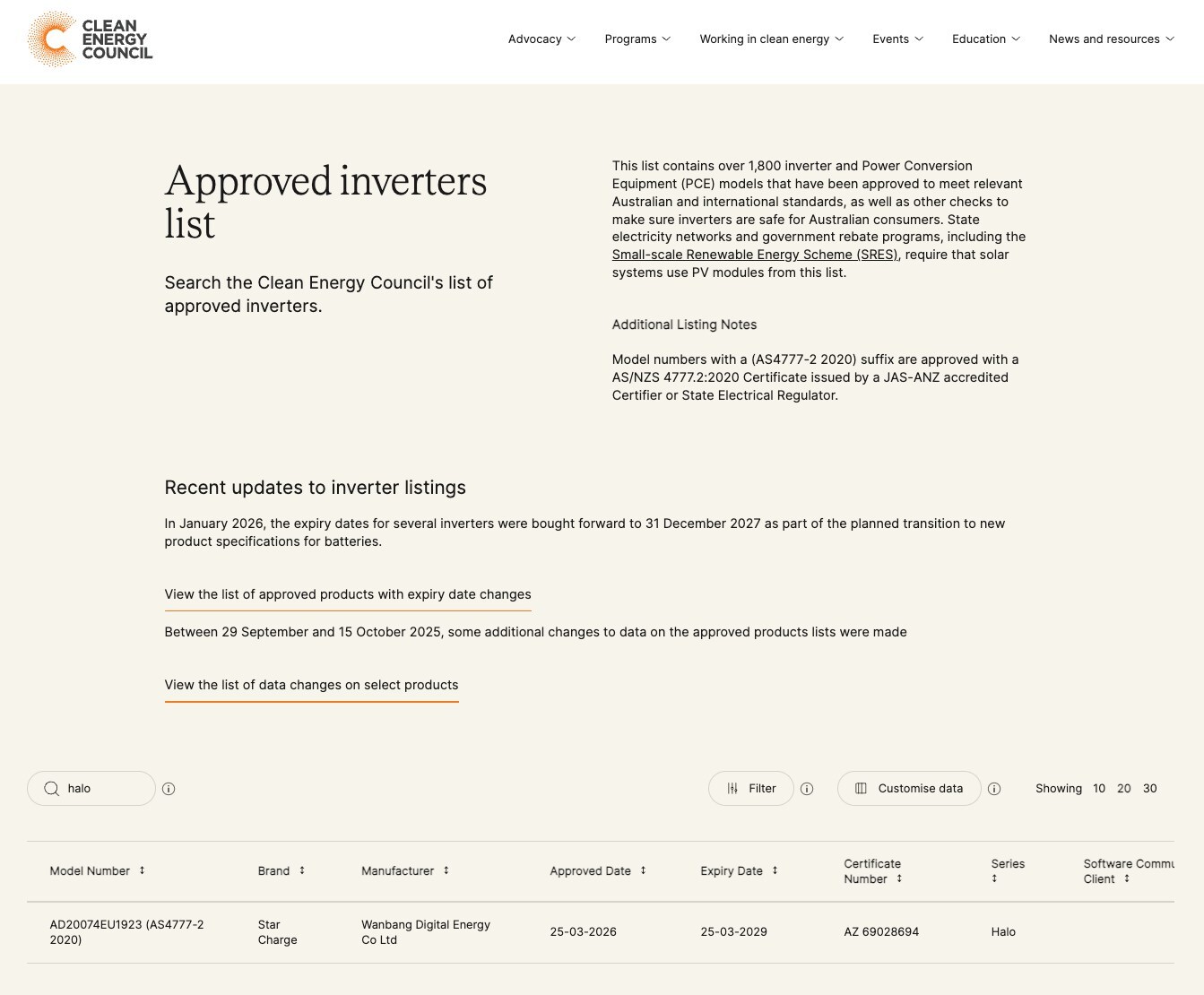 SYDNEY, March 30, 2026 /PRNewswire/ — StarCharge Energy Oceania today announced that its Halo 7.4kW V2G charger, model AD20074EU1923, has secured listing with the Clean Energy Council (CEC) in Australia, marking an important step toward broader deployment of vehicle-to-grid (V2G) technology in the local market.
