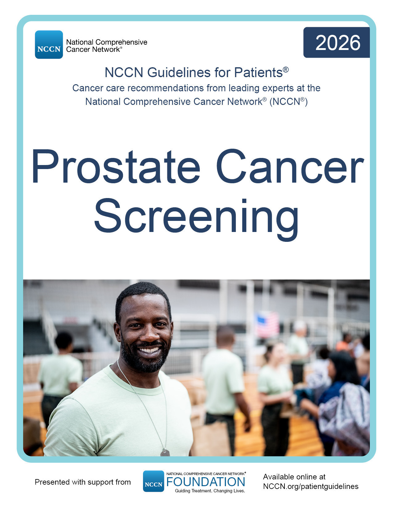 The NCCN Guidelines for Patients: Prostate Cancer Screening is now available for free download at NCCN.org/patients or via the NCCN Patient Guides for Cancer App, thanks to funding from the NCCN Foundation®.