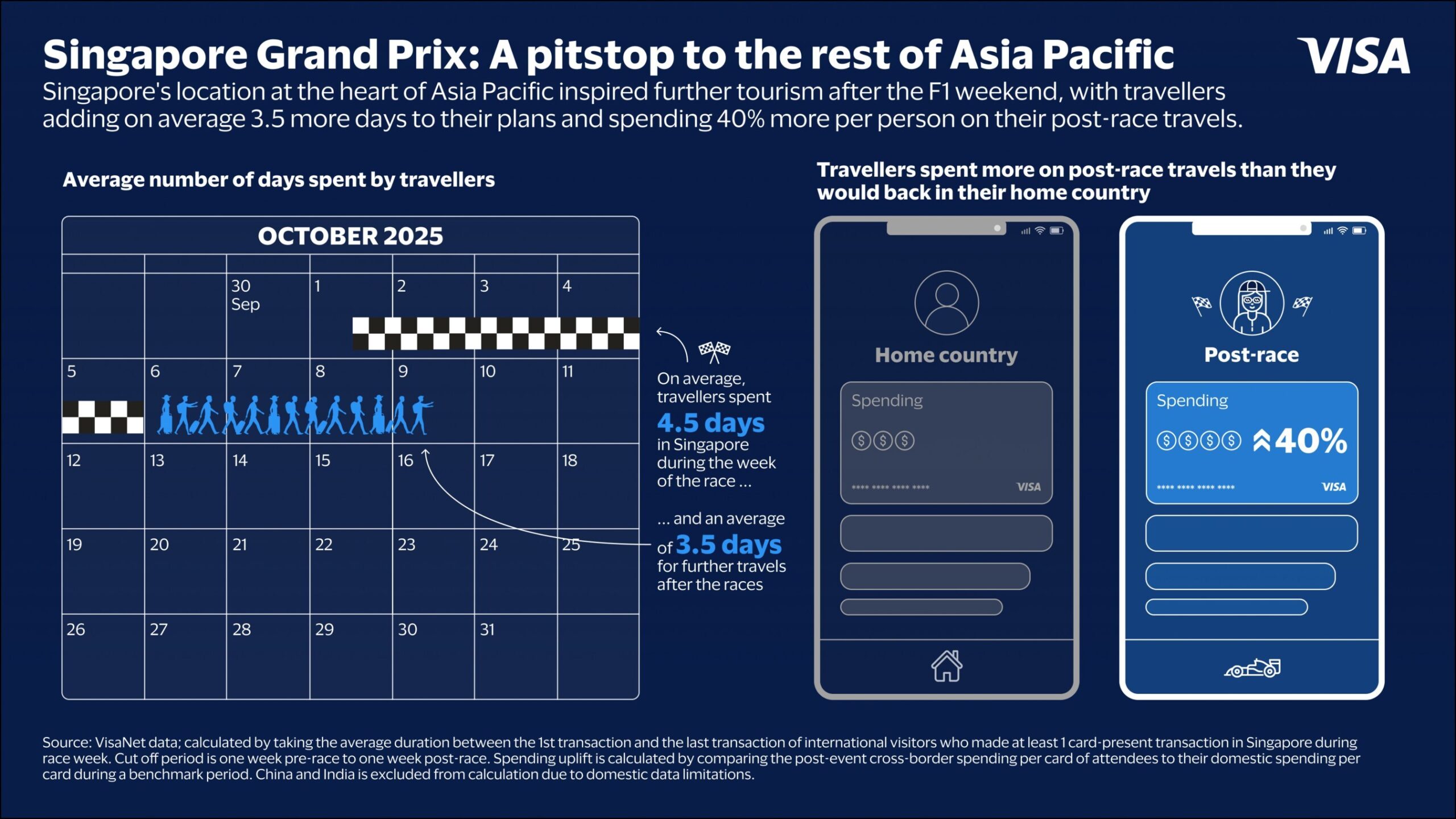 SINGAPORE, Oct. 31, 2025 /PRNewswire/ — Visa, the world leader in digital payments, revealed new data fans and visitors travelling further to the rest of Asia Pacific following the Formula 1TM Singapore Grand Prix race weekend.
