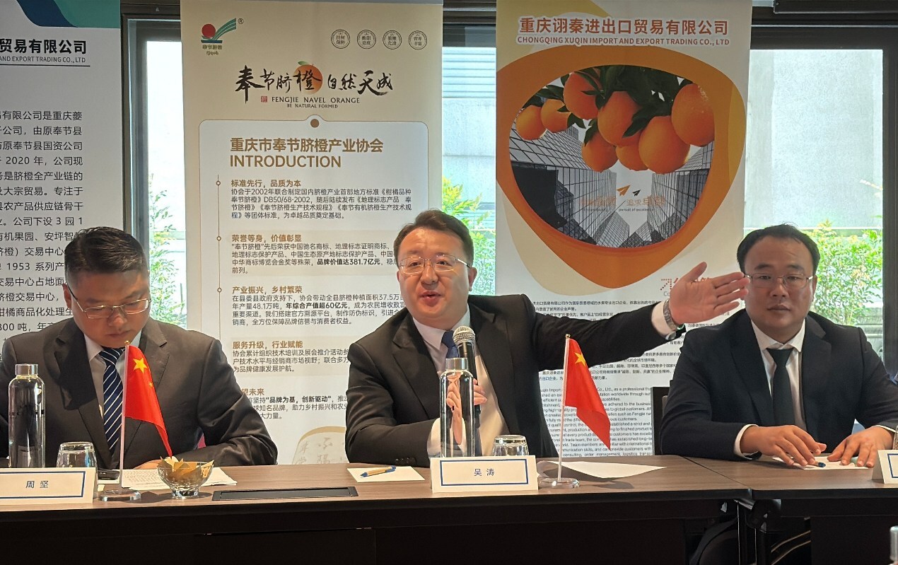 Why are Fengjie navel oranges finding a foothold abroad? In a presentation at the event, Mayor Wu described Fengjie as being in the heart of the Yangtze River’s Three Gorges Reservoir region—one of the world’s eight major navel orange production areas and China’s highest-yielding county per hectare. The county has developed roughly 25,500 hectares (approx. 63,000 acres) of orchards, producing an annual harvest of 507,000 tons. The industry’s annual output value exceeds 6.5 billion yuan (approx. USD 890 million), with a brand valuation of 38.17 billion yuan (approx. USD 5.2 billion), according to local government data, making Fengjie’s oranges a flagship product for Chongqing’s agricultural sector.